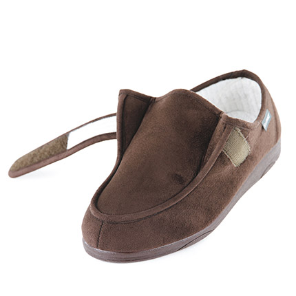 • Chaussure ultra confort équipée d’une sangle et d’une semelle dimensionnées pour les pieds larges.